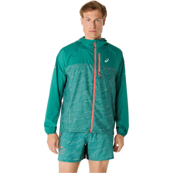 The FUJITRAIL PACKABLE WINDBREAKER PERFORMANCE is a windproof and waterproof trail jacket for men from Asics.
