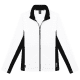 Thermal ski sweater with central zip made of soft jacquard fleece. The feminine cuts and the contrasts on sides and underarm in solid fabric contribute to enhance the silhouette of this technical garment that combines comfort and practicality. In the two comfortable zip pockets you can safely store your most precious accessories.