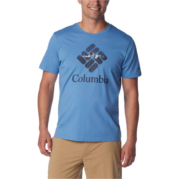 Show your love for the wilderness on all your everyday adventures with this Columbia cotton tee-shirt featuring a large graphic logo on the chest.