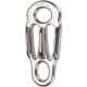 This belaying plate is specially designed for rappelling with thin ropes. It is in fact the only accessory suitable for such small ropes. It has two holes, the upper one for belaying and the lower one for rappelling.