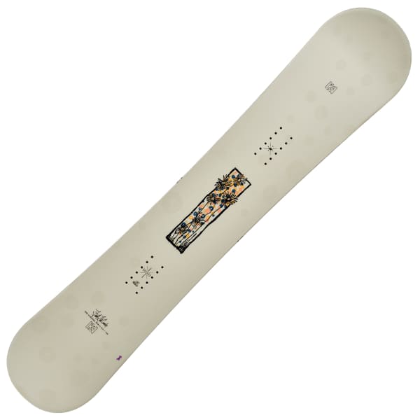 With this board, women are guaranteed stability and balance, thanks to the Rocker Baseline camberthat facilitates immediate pivoting and gauging in powder. Its light pintail shape combines with a center position, an ideal combination for learning. Its Aspen Core is made of a single wood that ensures a soft, playful flex, the right compromise between maneuverability and lightness.