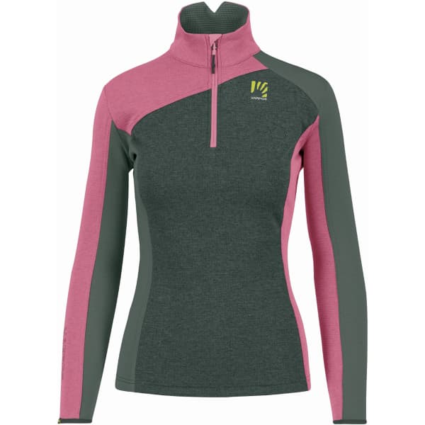 Unique with its colorblock print, the FEDERA HALF ZIP W from Karpos is a women's fleece zipper top that offers a great layer of warmth while remaining lightweight.