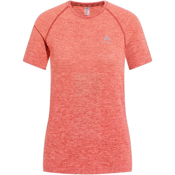 TheOdlo ESSENTIAL SEAMLESS W is a women's technical running shirt with a lightweight, seamless construction for comfort.
