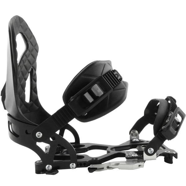 Made of 7075 aluminum, the base of this binding is solid and light, while the spoiler is less rigid than the Feyan model because it is made of injected plastic and has an asymmetrical shape that can be tilted forward with traditional snowboard adjustments. The two straps provide excellent support, while two mounting wedges make climbing easier.