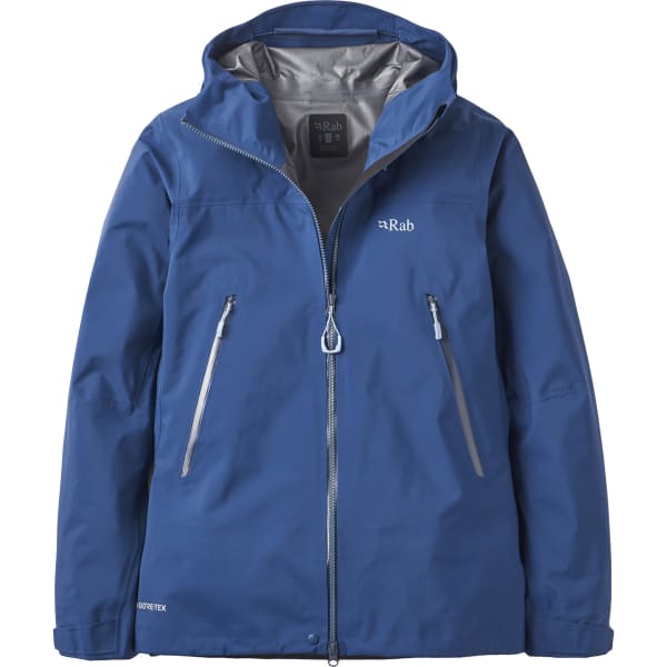 What's more, the hood can be adjusted with just one hand, providing protection from the wind and rain while guaranteeing good visibility and the ability to turn your head. This jacket features details designed by Rab for your comfort, like the soft chin protector and fleece-lined collar, and the two generous outside pockets and small zipped inside pocket that keep your stuff safe and dry.