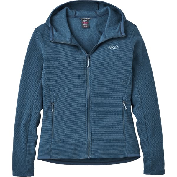 The women's STAVEL HOODY hooded jacket from Rab combines technical features with comfort for outdoor adventures.